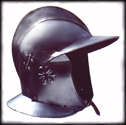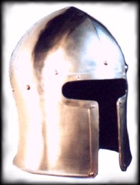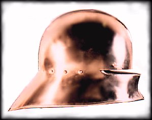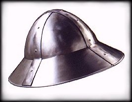 | Burgonet | : | 面前と首の防御のない現代のヘルメットのような金属製の兜。ベヴァー、バイザー装着可。バイザーを装着した場合、バイザーは上ではなく、下に開く (falling buffe) 。 |