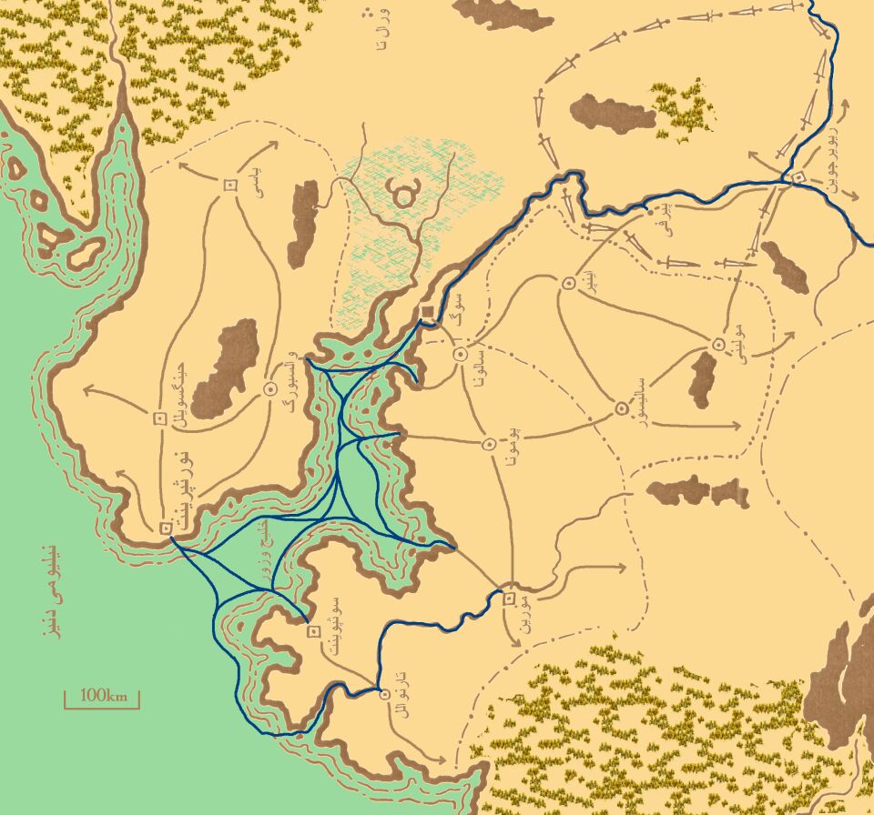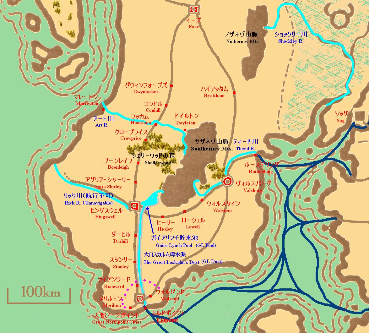 This map shows the road network of the Loskalm Kingdom of the version that Efendi designed. The explanations of this settings are under writing.