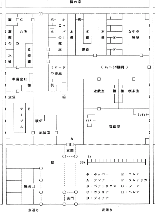 二人はまだ生き残っている女中たちとホッパーを縛り上げ、玄関のホールに並ばせてミロード・デ・テースの帰りを待つことにした。
